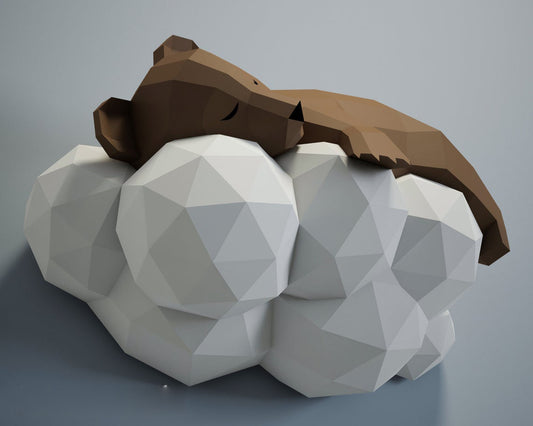 3D-Origami-Bär, der auf einer Wolke schläft, zum Selbermachen