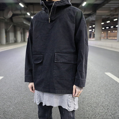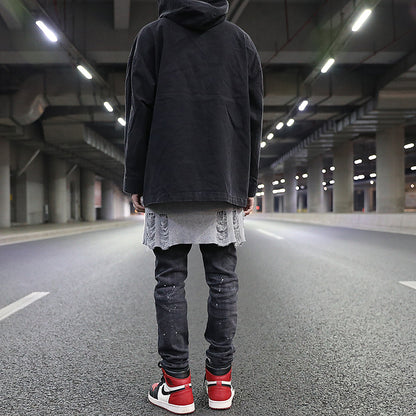 Schwarze Jeansjacke mit Kapuze und Taschen für Jugendliche