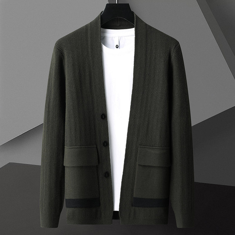 Werten Sie Ihre Garderobe mit unserem Herren-Cardigan-Pullover auf, der von der raffinierten Eleganz des koreanischen Stils mit einem unwiderstehlichen minimalistischen Touch inspiriert ist . Dieses Kleidungsstück vereint den zeitlosen Charme des Cardigans mit einer modernen und raffinierten Neuinterpretation, perfekt für alle, die Schlichtheit schätzen, ohne auf Klasse zu verzichten. Das klare und essentielle Design fängt die Essenz des koreanischen Stils ein und bietet Vielseitigkeit und Raffinesse in jedem Detail.