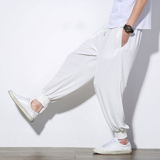 Lightweight loose jogger trousers with drawstring waist and ankles for men
