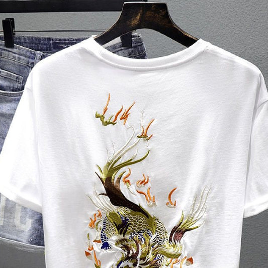 Loose fit embroidered Chinese dragon short-sleeved t-shirt