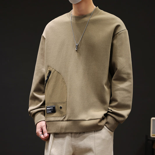 Loose fit long-sleeved crew-neck sweatshirt with asymmetric pocket for men
