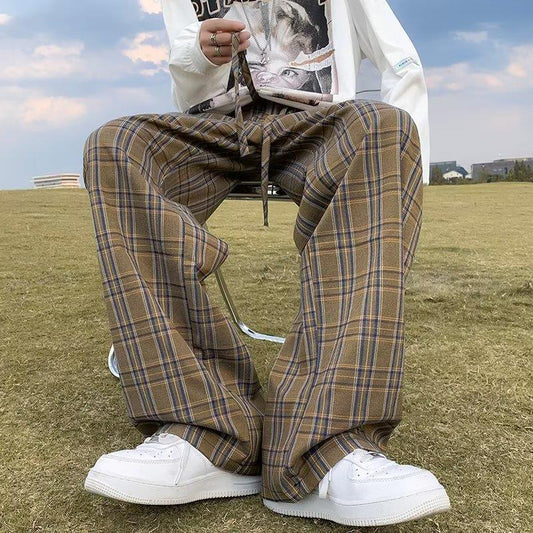 Fashionable Korean design loose fit tartan pattern men's trousers