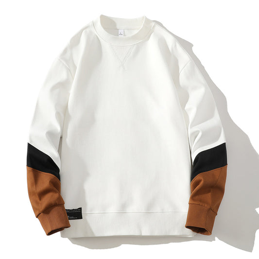Casual loose fit crew neck sweatshirt with color matching sleeves for men
