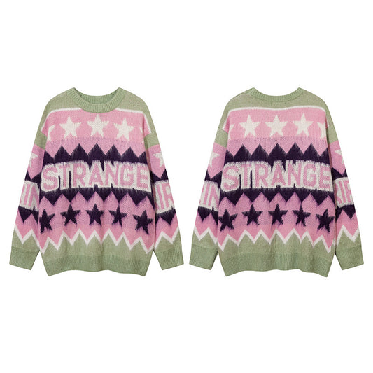 Crew-neck sweater in loose-fit patterned jacquard fabric