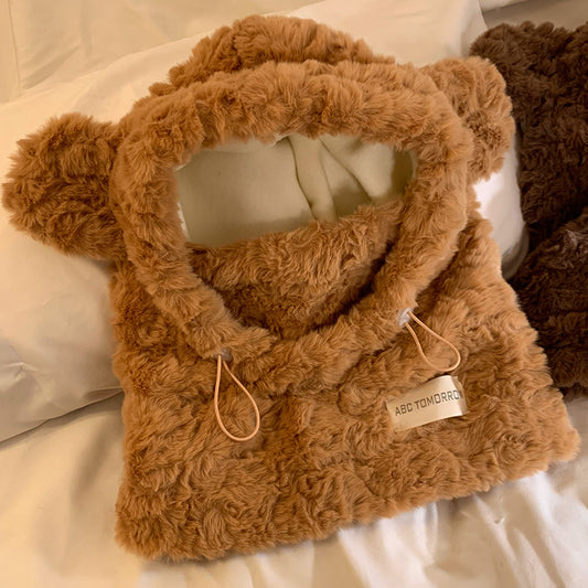 Cute balaclava with plush bear ears