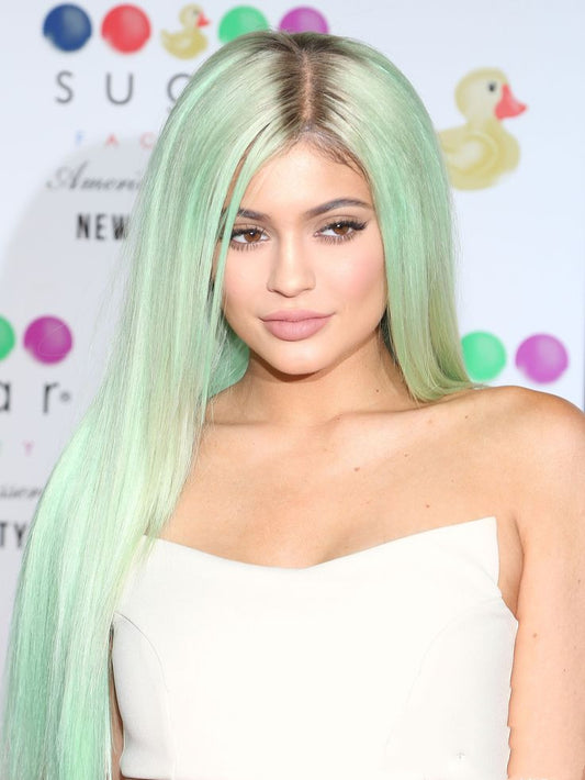 Wig with long straight hair shaded in various colours