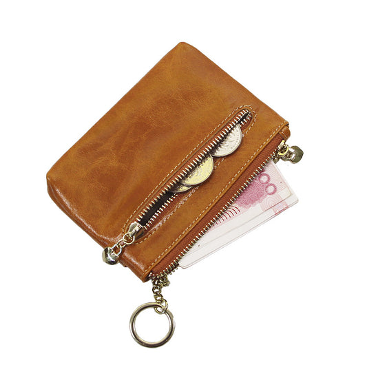 Vintage style double zipper pocket leather wallet