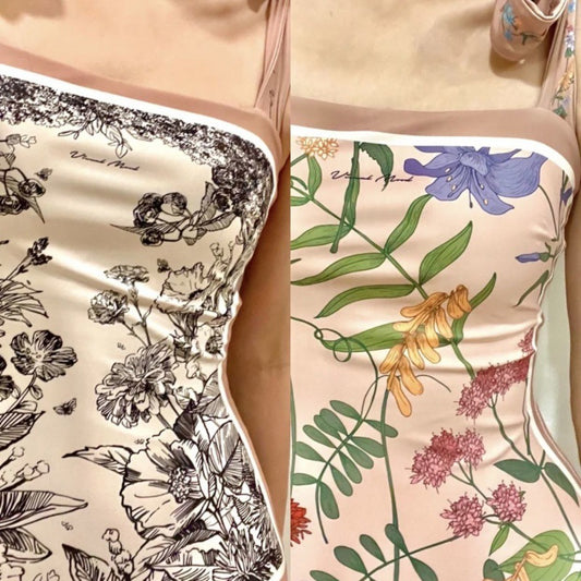 Women's reversible floral print lace-up swimsuit in French vintage style