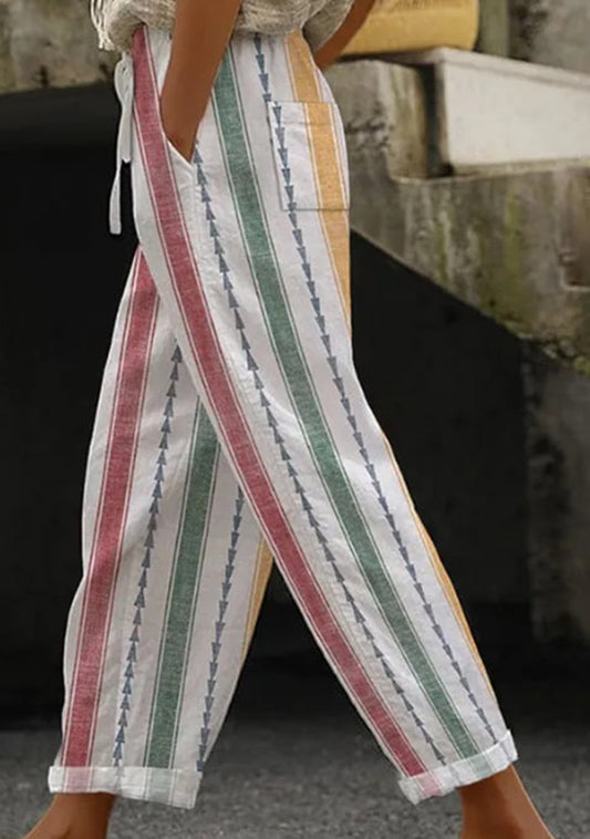 Unisex Striped Geometric Print Linen Comfortable Casual Pants