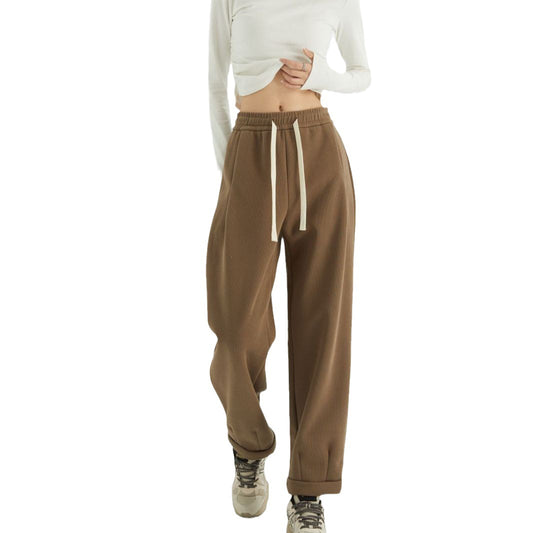 Women's Fashion High Waist Lace Up Casual Loose Fit Straight Leg Pants