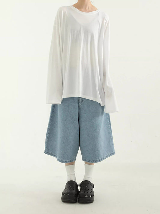 Oversized washed effect denim jacket with long sleeves in Hong Kong style