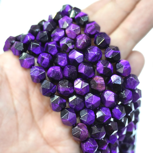 Natural Purple Tiger Eye Diamond Cut Loose Beads Strand DIY Accessory