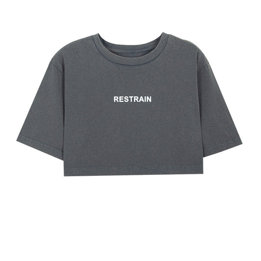 RESTRAIN smoke gray short-sleeved loose fit cropped t-shirt for women