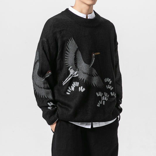 Crewneck sweater lined with 3D Japanese swan flight print for the couple