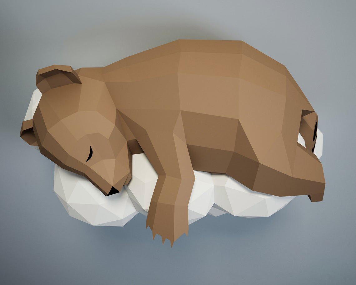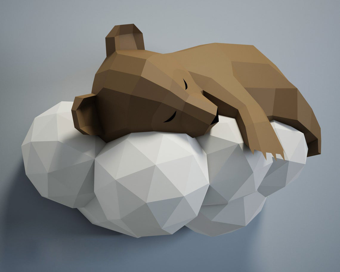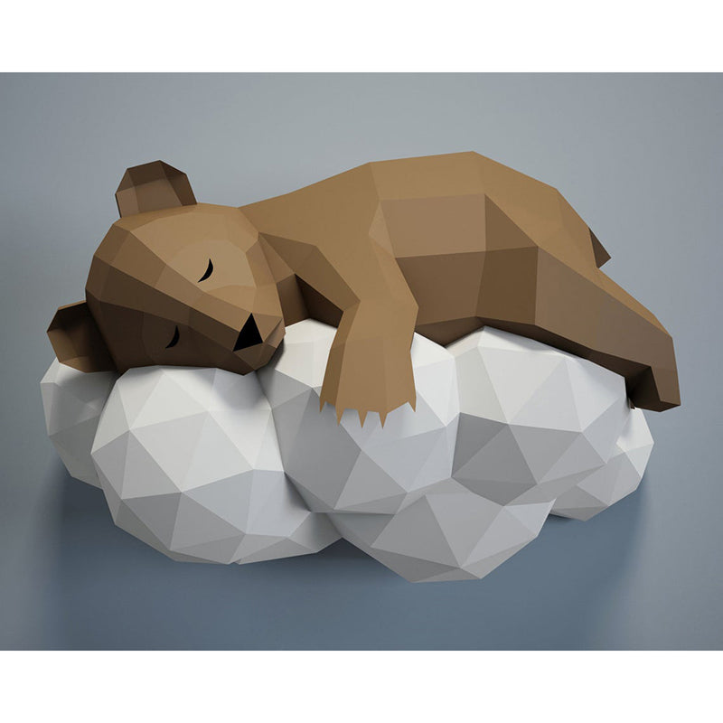 3D origami bear sleeping on cloud kit for DIY