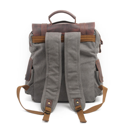 Small canvas and genuine leather backpack in vintage style