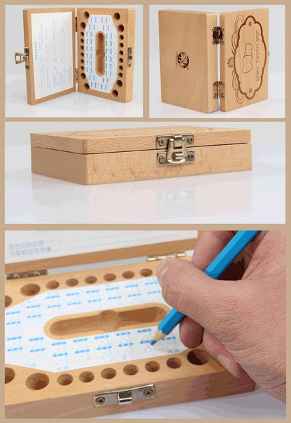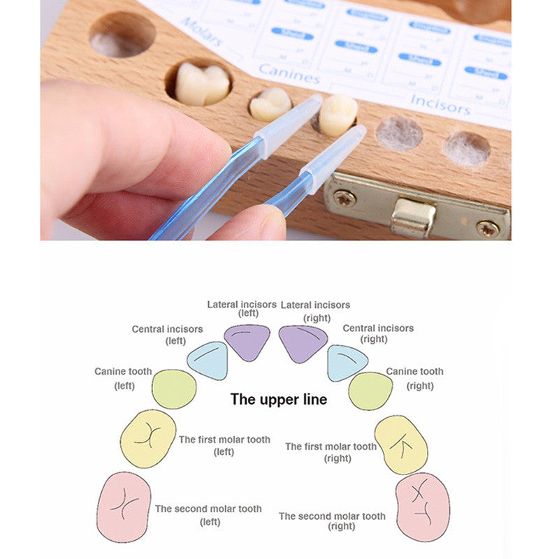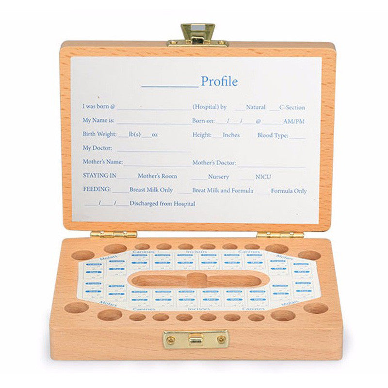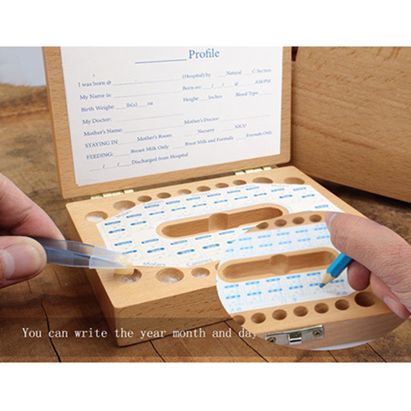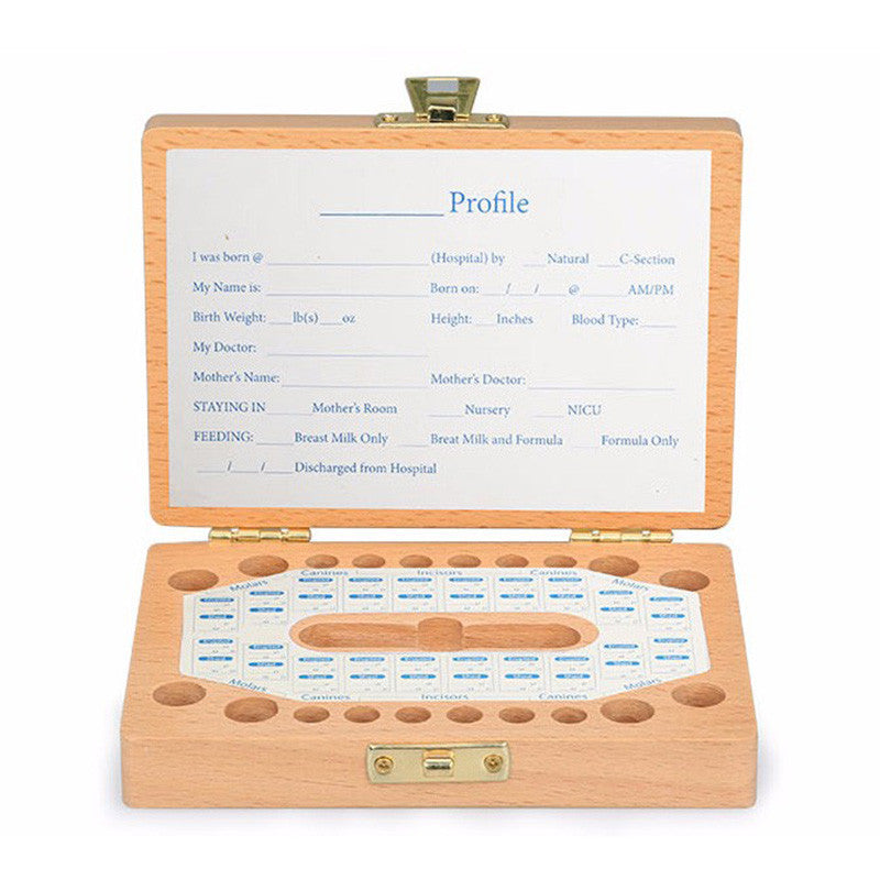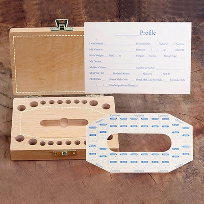 Preserve precious memories of your baby 's growth with our delicate wooden baby teeth box . Carefully crafted and designed to preserve every little lost baby tooth, this box offers a special and affectionate way to immortalise the important stages of your child's growth. With a dedicated compartment for each tooth, you can keep these memories organized and safe. The box is a unique and meaningful idea for baby shower gifts or for new parents eager to cherish the unique memories of their little treasure.