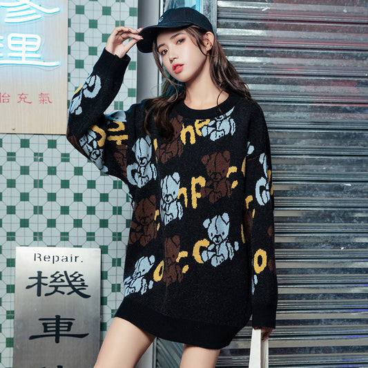 Sweat-shirt ample imprimé à manches longues et col rond pour femmes