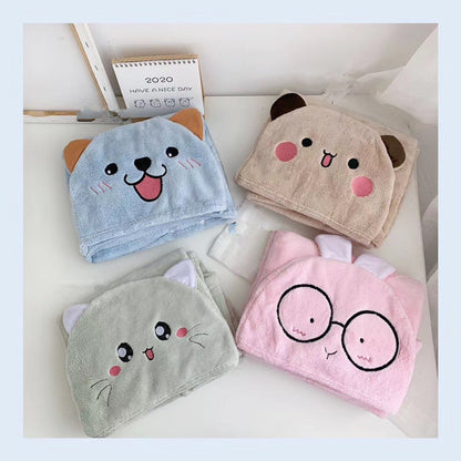 Serviette de bain super douce et absorbante sur le thème des animaux : chien, ours, chat, lapin.