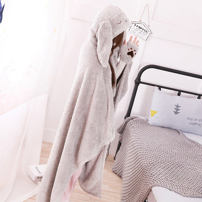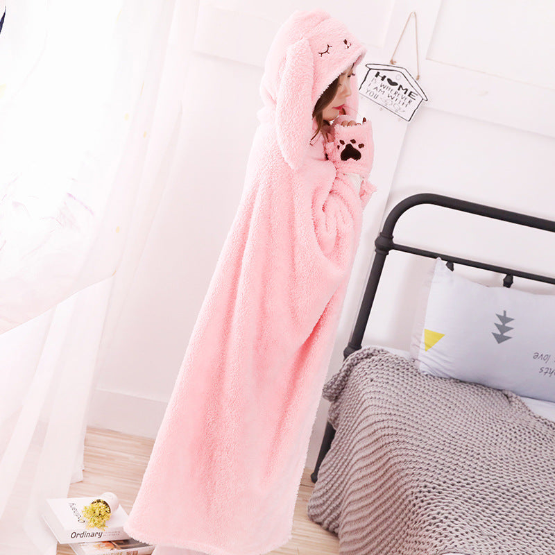 La couverture manteau lapin et dinosaure de style coréen est en peluche polaire corail, très douce au toucher et capable de garder le corps au chaud, elle dispose également d'un joli revêtement semblable à un gant pour vos mains.