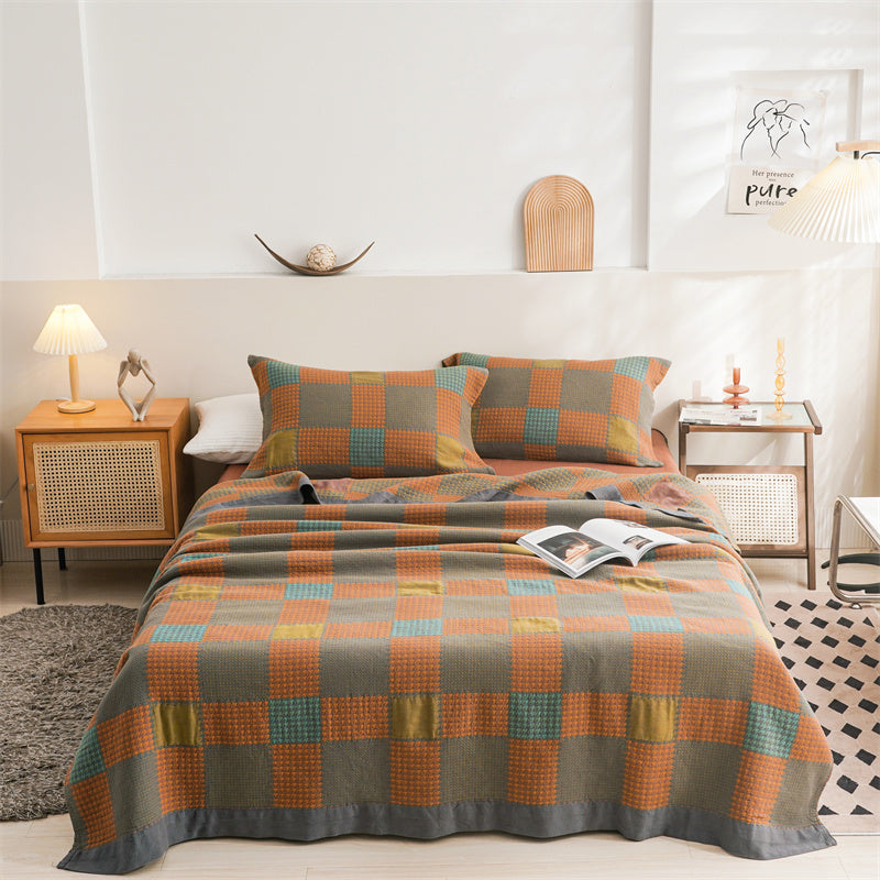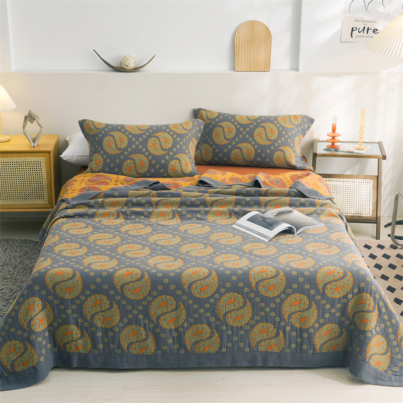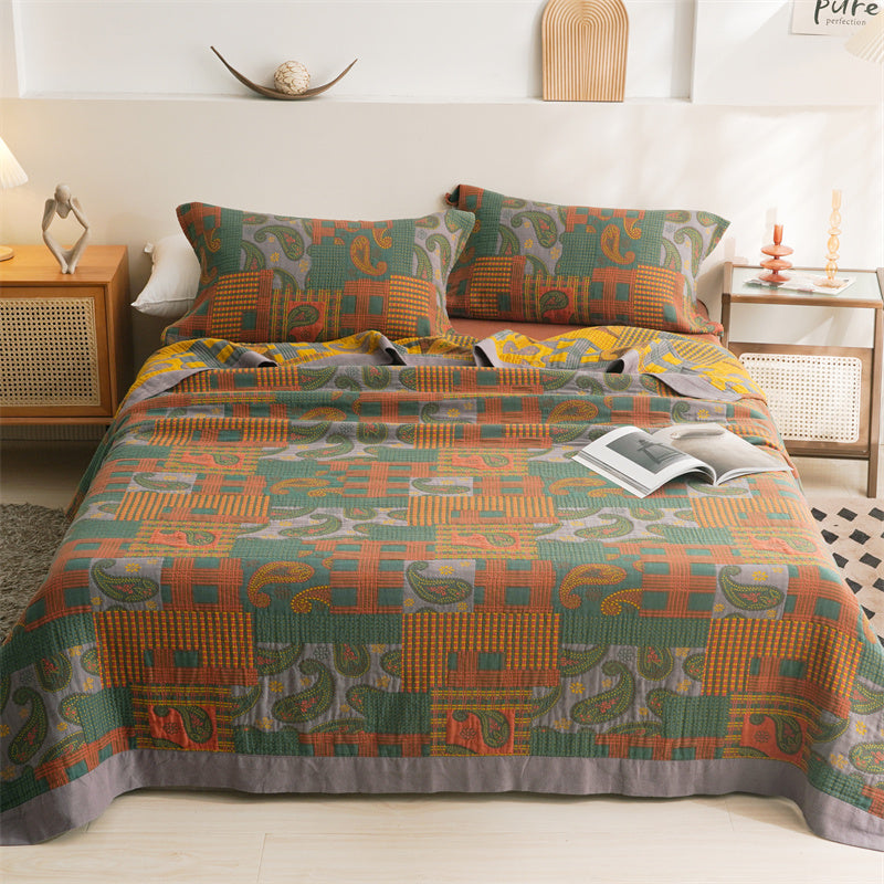 La couverture matelassée en coton de style vintage est douce et délicate au toucher, son imprimé rappelle les tissus vintage.