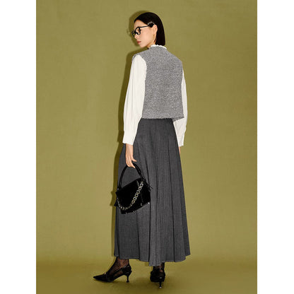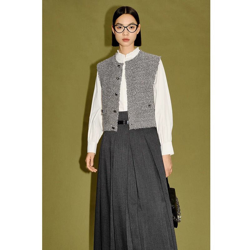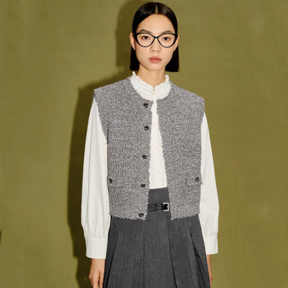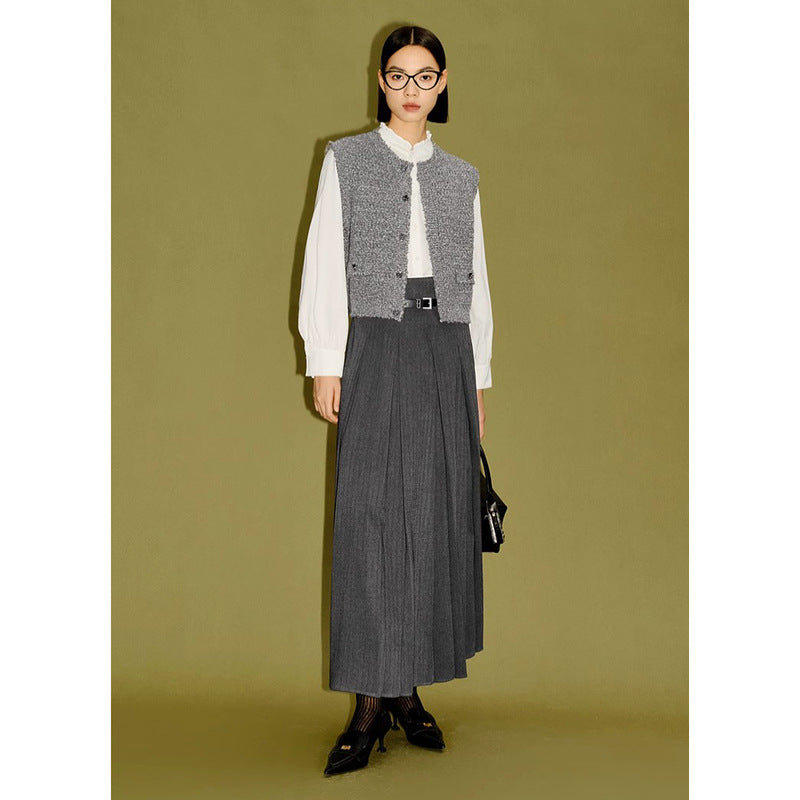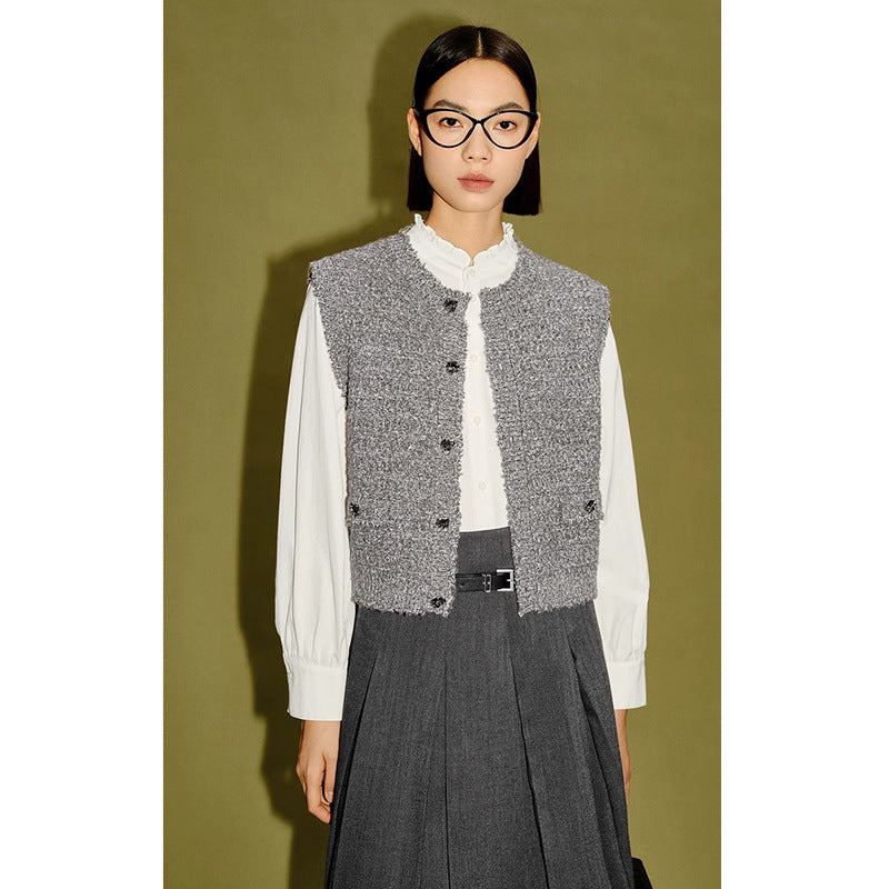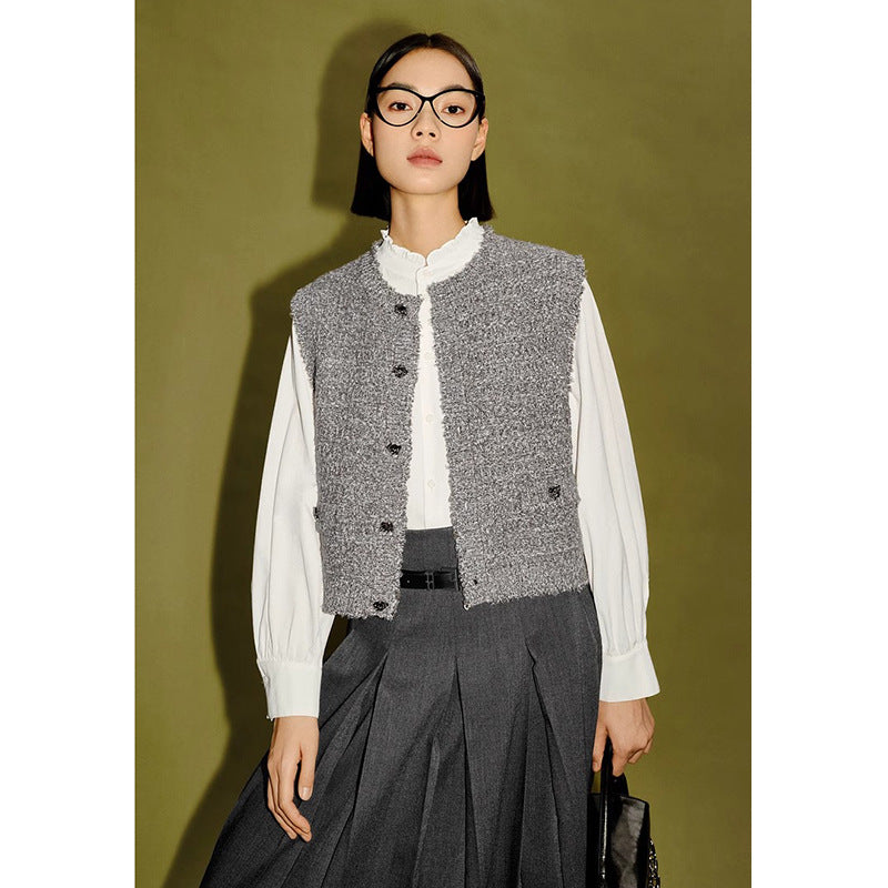Gilet tricoté gris mélangé pour femmes