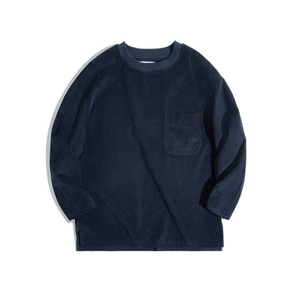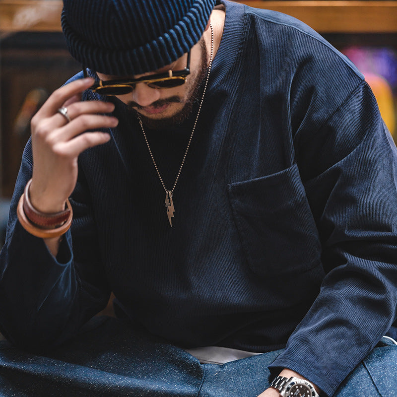 Pull élégant en velours côtelé et daim avec poches pour homme automne et hiver
