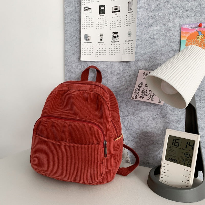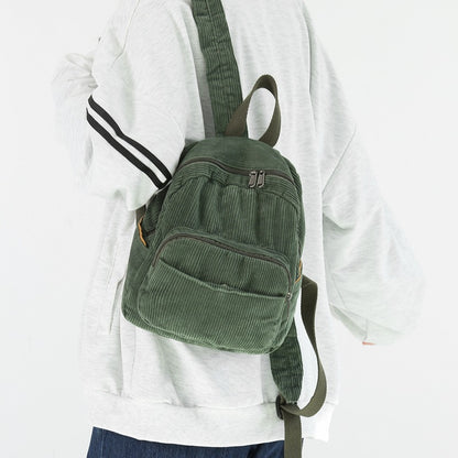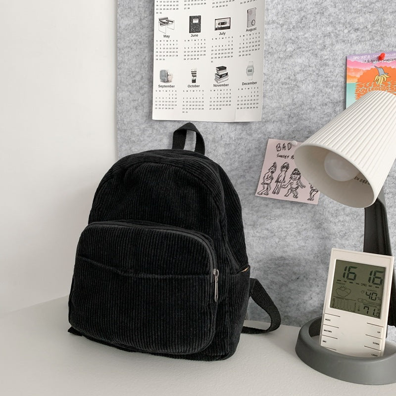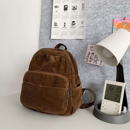 Sac à dos en velours côtelé monochrome de capacité moyenne