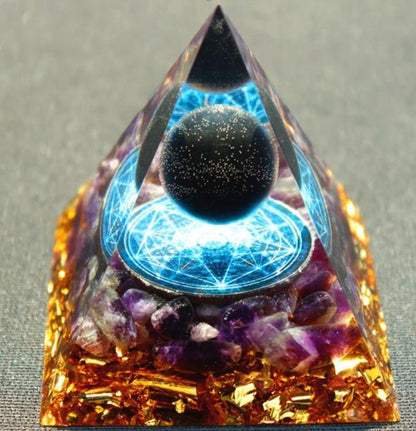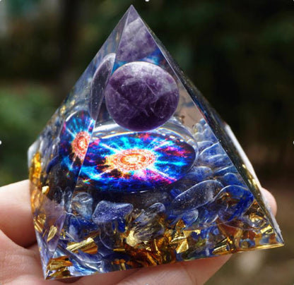 Scopri la piramide di cristallo energetico su Aspie Shop, realizzata in resina epossidica e impreziosita da cristalli, pietre naturali, lamina d'oro e filo di rame. Questa piramide unica è progettata per armonizzare e potenziare le energie, grazie alla combinazione di vari materiali naturali e preziosi. Perfetta per chi cerca un oggetto decorativo con proprietà energetiche, ideale per la meditazione, la protezione e il bilanciamento del campo energetico. Aggiungi un tocco di bellezza e spiritualità al tuo spazio con questa piramide energetica disponibile su Aspie Shop.