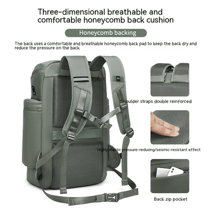 Puoi inserire lo zaino da viaggio tramite la sua cinghia posteriore sulla maniglia di qualsiasi bagaglio a rotelle per un trasporto a mani libere, più facile da trasportare!